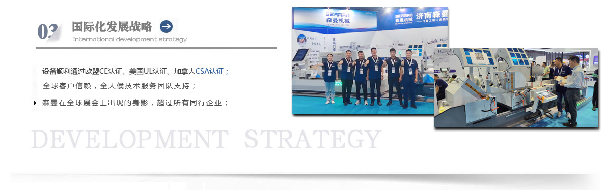 “森曼機(jī)械”作為全球門窗設(shè)備供應(yīng)商,本著"seaman"精神,勇立潮頭,拼搏創(chuàng)新,以爭做行業(yè)為目標(biāo),在行業(yè)前輩發(fā)展的基礎(chǔ)上,努力學(xué)習(xí),積極進(jìn)取。目前公司產(chǎn)品涵蓋塑料門窗設(shè)備、鋁合金門窗設(shè)備、鋁幕墻設(shè)備、鋁木復(fù)合門窗設(shè)備及中空玻璃設(shè)備五大種類,近百個(gè)品種。公司產(chǎn)品銷售至全國各地及東南亞、非洲、東歐、北美等幾十個(gè)國家和地區(qū)。在這個(gè)競爭激烈的年代,我們正努力使我們的產(chǎn)品!